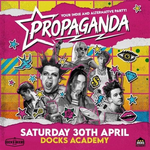 Ready for a night (and morning) of indie bangers? The popular club night Propaganda is back at Docks Academy on Saturday 30th April following the success of their huge NYE party at the Church. At Propadanda you’re guaranteed a night to remember, with a resident DJ spinning singalong indie anthems from 9pm through till 2am! Expect to hear the likes of The Killers, Arctic Monkeys, The 1975, Tame Impala, Pale Waves, through to My Chemical Romance, Paramore, and Fall Out Boy for those who still like to rock skinny jeans and chequered Vans?!